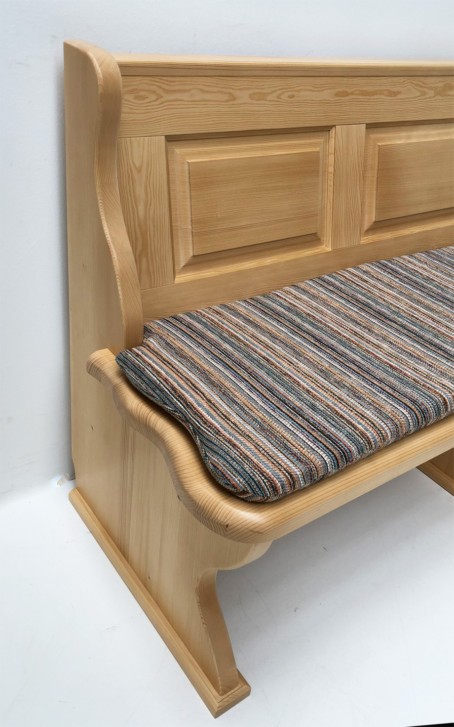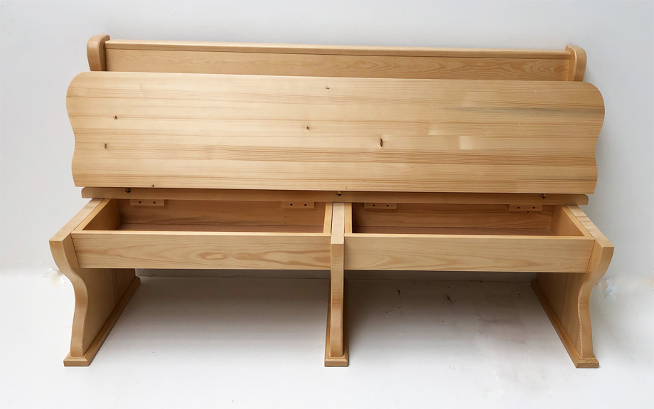 Einzelbank Lindau mit 1 Truhe, Höhe Wangen 88,5 cm, Ablage 87 cm, Länge 170 cm, starker Sitz und starke Wangen 4 cm , Aussenwangen glatt,