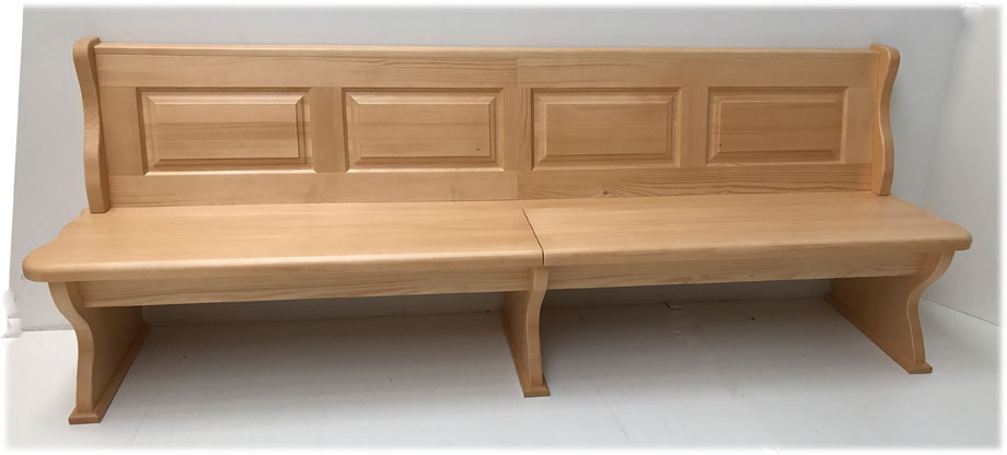 Einzelbank Lindau mit 2 Truhen, Höhe Wangen 88,5 cm, Ablage 87 cm, Länge 250 cm, starker Sitz und starke Wangen 4 cm , Aussenwangen gerillt