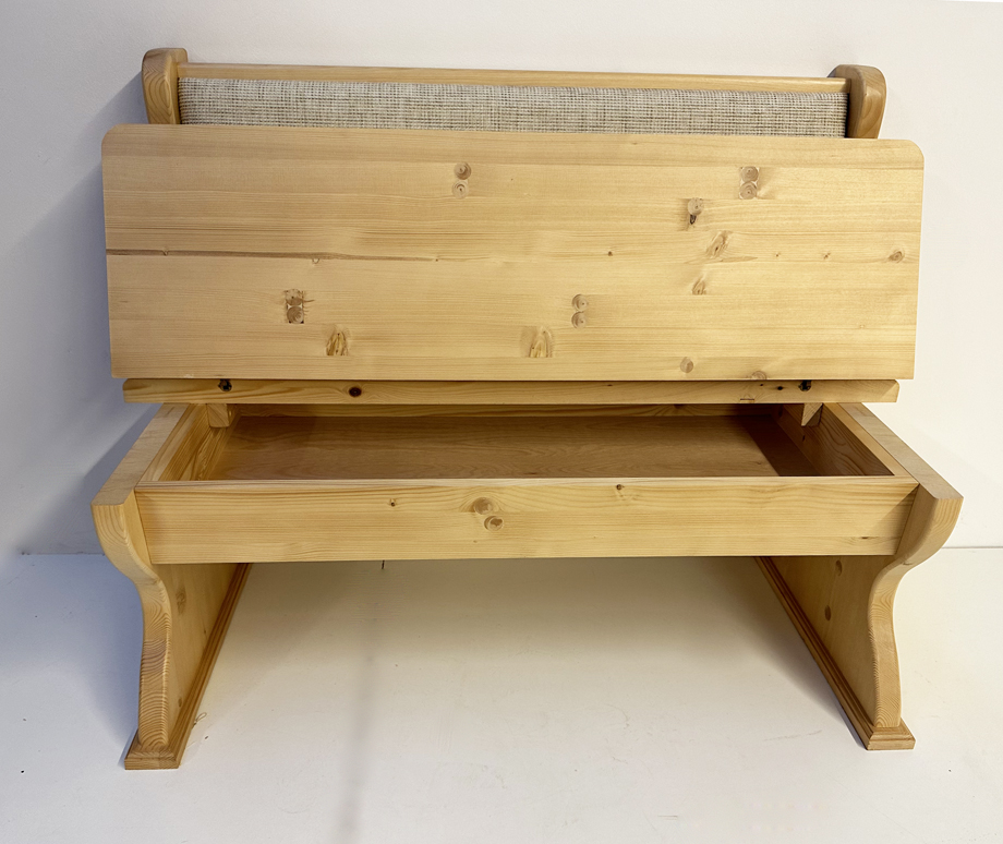 Einzelbank Lindau, Fichte massiv, Rosner Hartwachs, Länge 120 cm, Sitzabschluss gerade, Aussenwangen glatt, Rücken Vollpolster flächig, mit