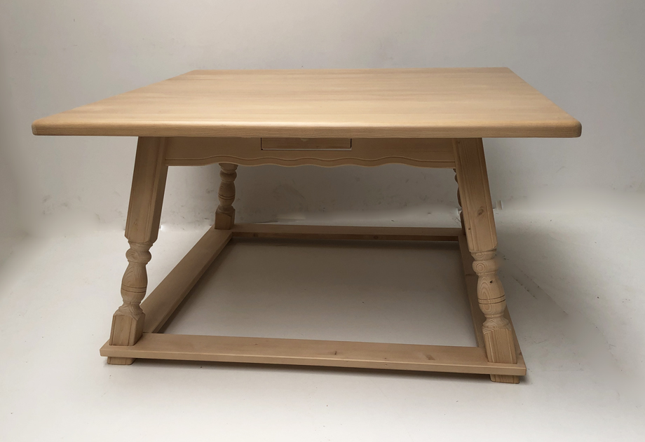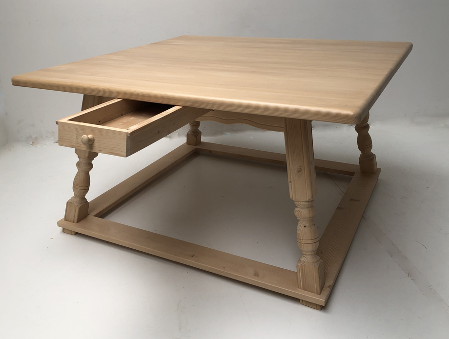 Abm. 140/140/Höhe 76 cm, massive Fichtenplatte 38 mm, mit Fußrahmen ! Fichte gebeizt und lackiert