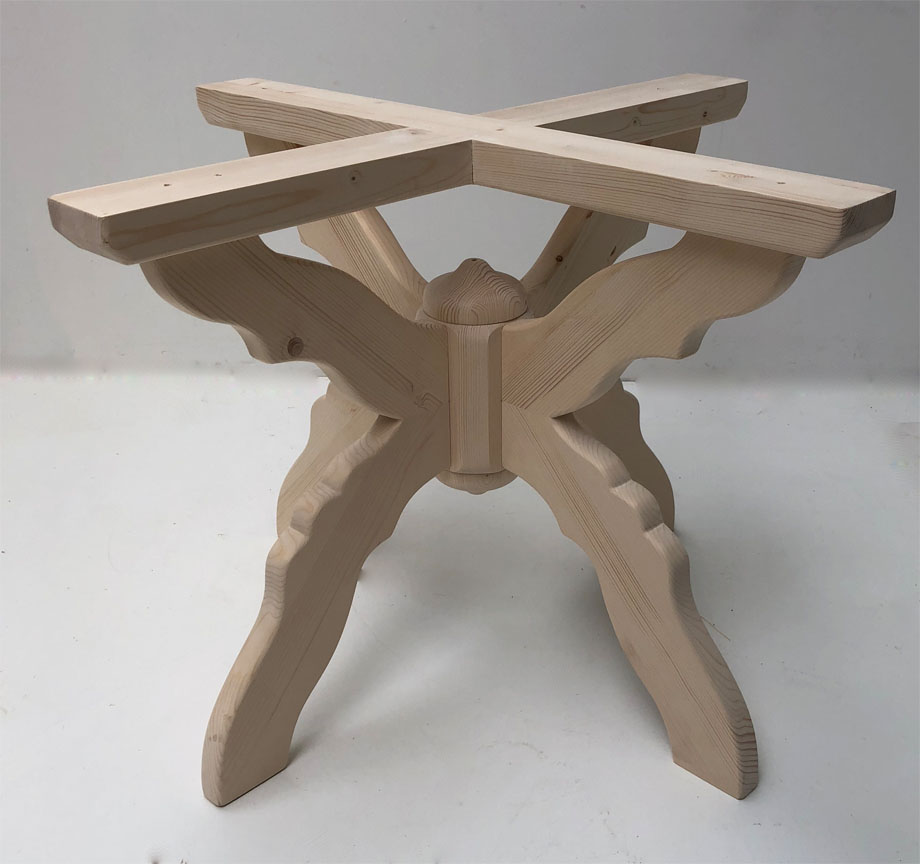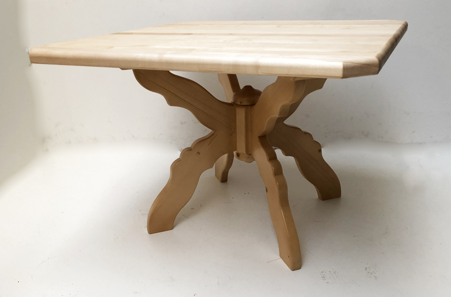 Kreuzfußtisch Kreuzzargentisch 110/110 cm, Ahornplatte , Ecken abgeschrägt