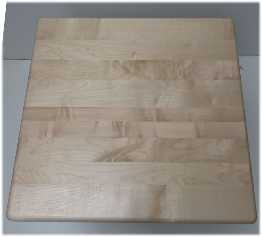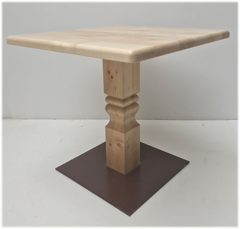 Mittelsäulen-Tisch mit Fußscheibe Metall , Ahornplatte 80/80 cm