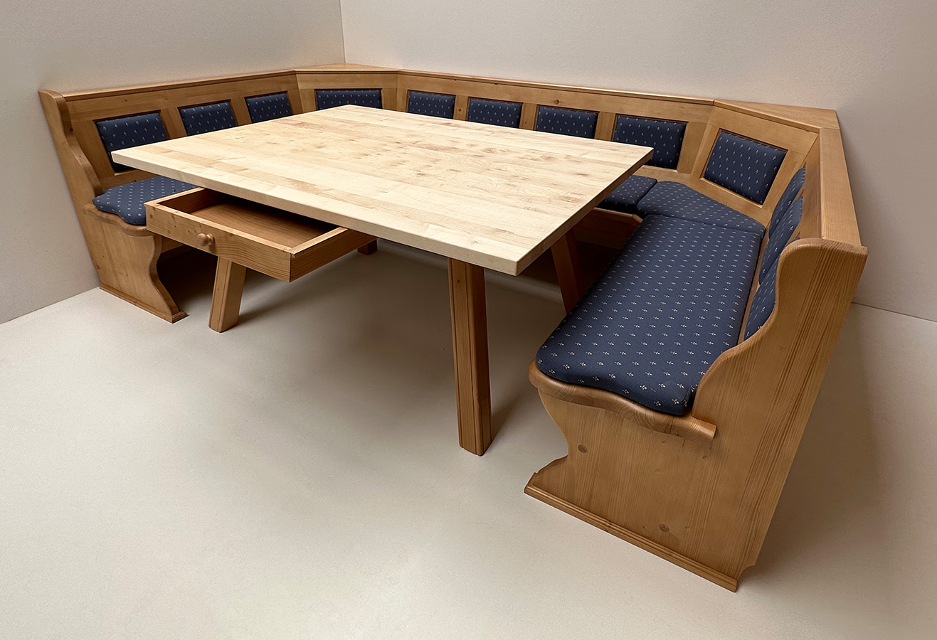 Gerne fertigen wir Ihnen diese Eckbank auch im Wunschmaß auf Anfrage an