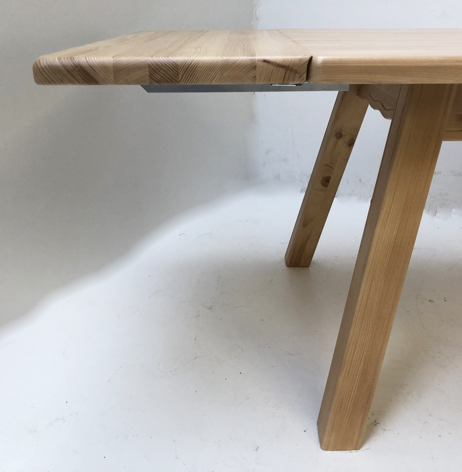 Vierfußtisch 4510 Amberg-Rosenheim, Schubl., gerader Fuß, Fichteplatte 140/90 cm, mit Ansteckplatte