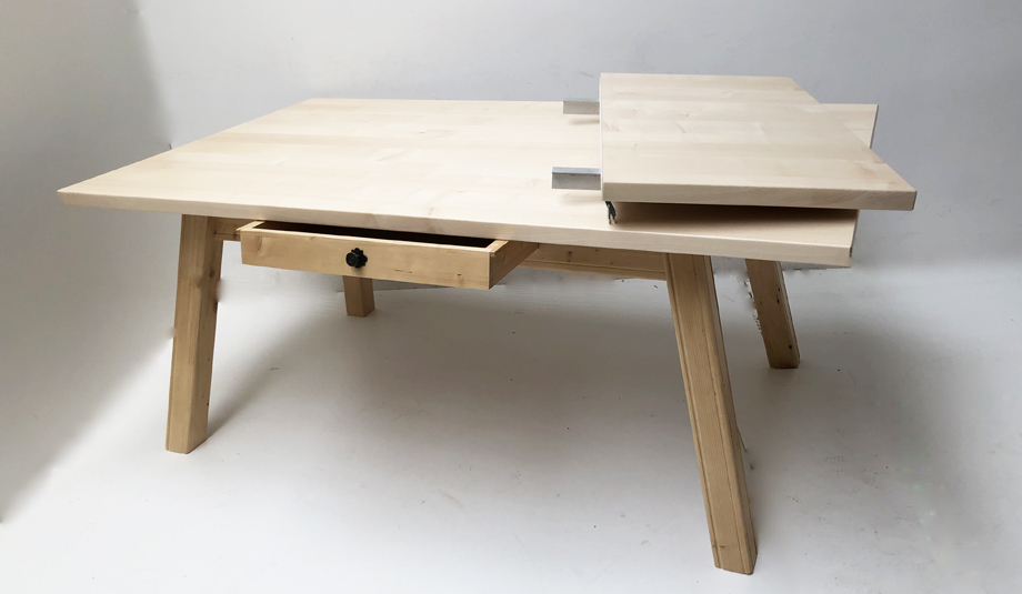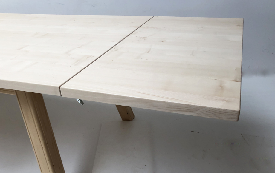 Vierfußtisch 4510, gerader Fuß, 110/185 cm, Ansteckplatte 40 cm , Ahornplatte, Profil R5