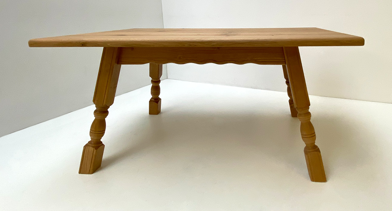 Tisch 4510 mit gedrechselten Beinen, Gestell in Fichte, Kleur 2 Antik dunkel lackiert, ohne Schubladen, Abm. 100/160 cm, massive Tischplatte in Wildeiche geölt