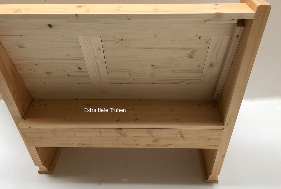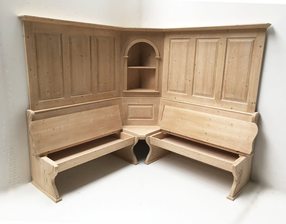 Eckbank LINDAU 195/195 Wandverkleidung mit Eckkapitel, extra tiefe Truhen, oben tiefes Bord 14 cm !