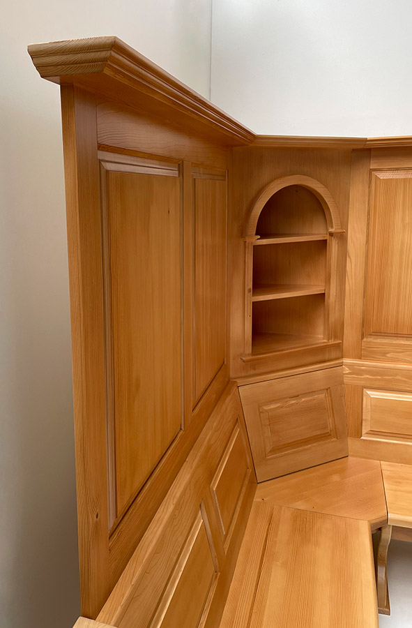 Offenes Eckkapitel geschwungen, 2 Böden gleich 3 Fächer !