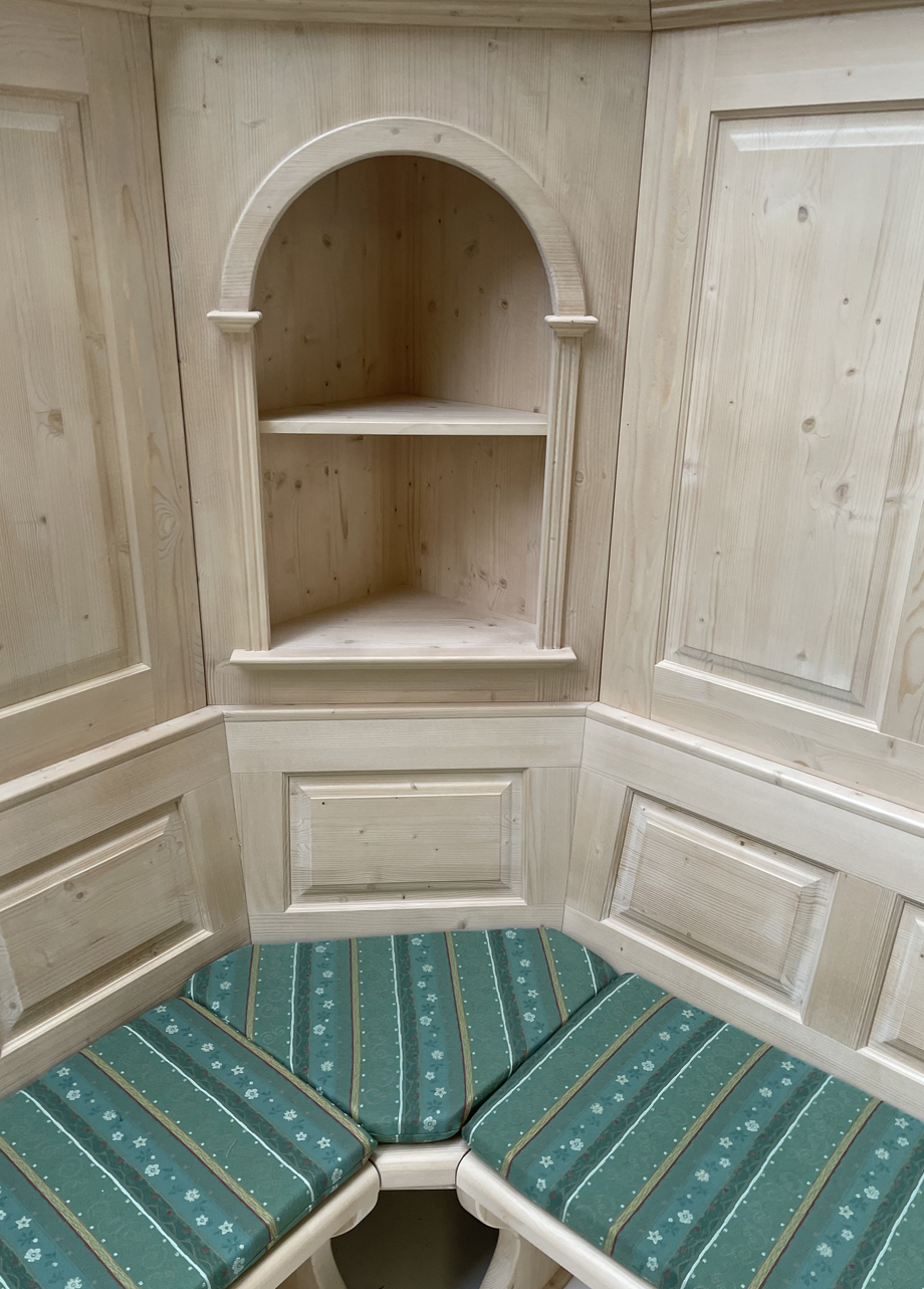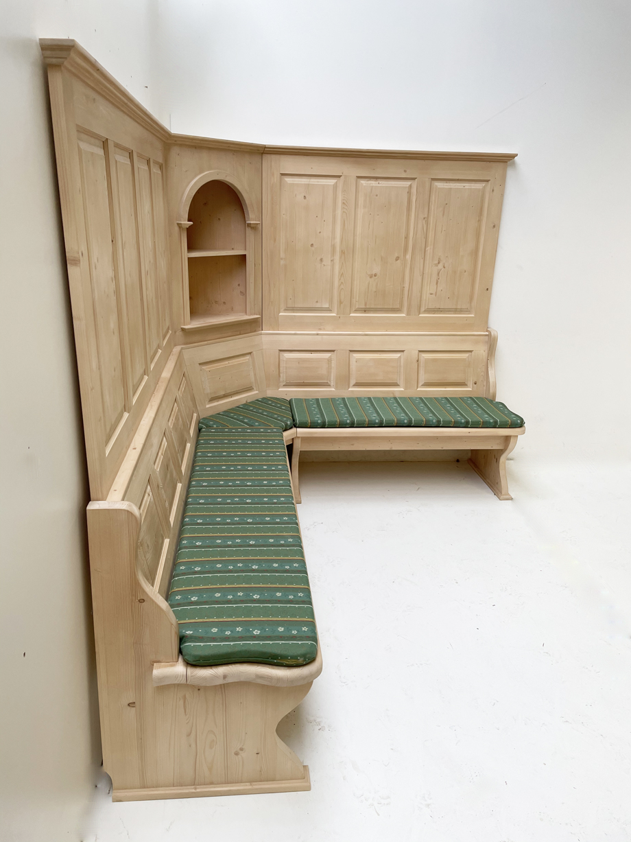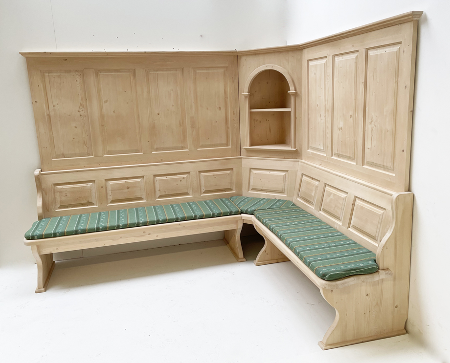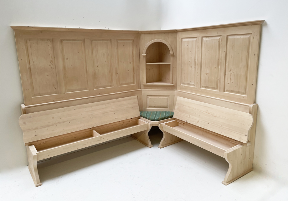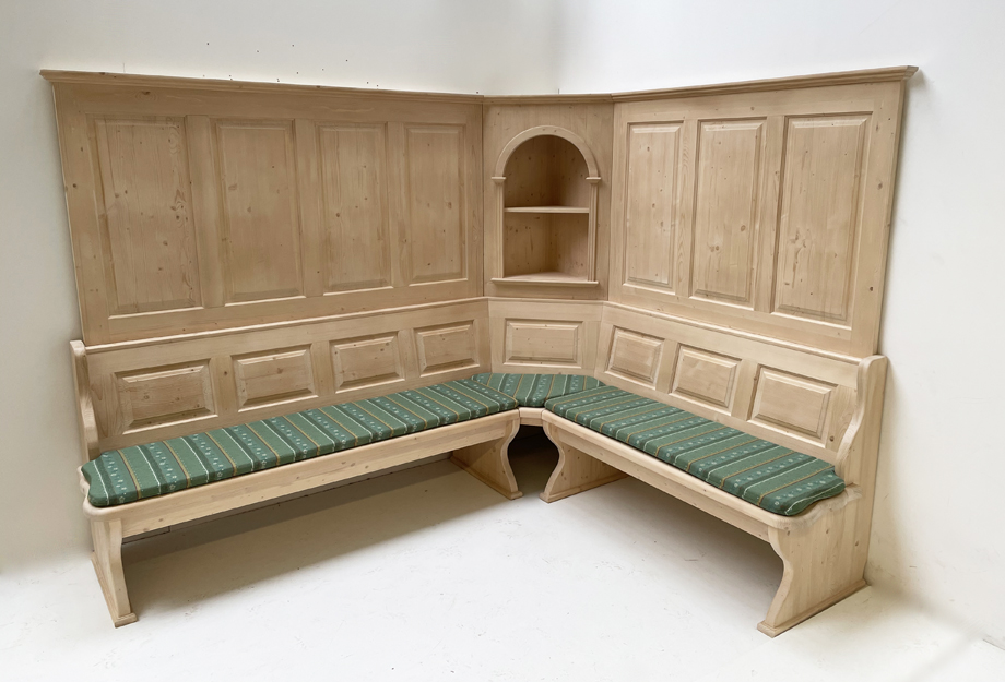 1 Eckbank Lindau im Schenkelmaß 240/195 cm, Wandverkleidung Höhe 100 cm, mit Kasetten , offenes Eckkapitel