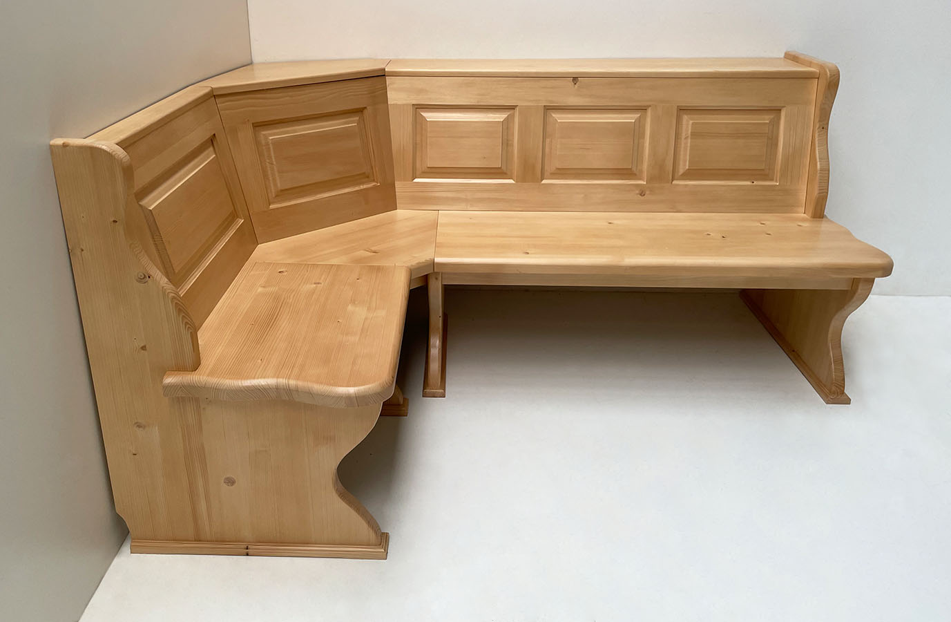 Eckbank Lindau 185/185, Ablagen- und Wangenverbreiterung Schenkel 185 cm links um 30 m, ohne Truhen