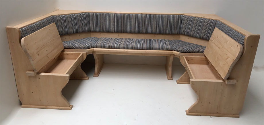 1 Eckbank Lindau in U-Form Schenkelmaß 140/250/140 cm, mit Truhen links und rechts,