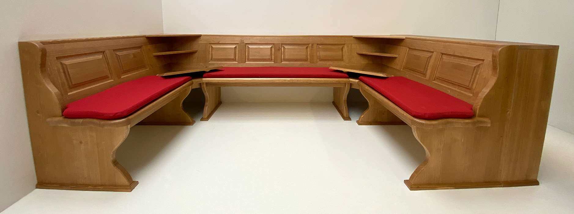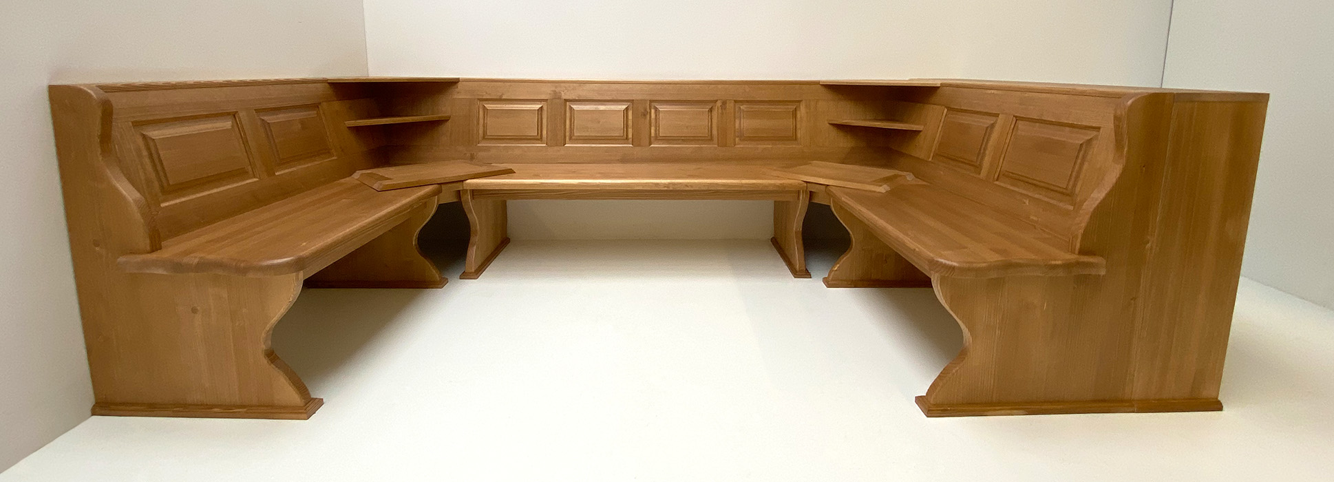 1 Eckbank Modell Lindau, U-Bank 165/280/165 cm, Außenwangen glatt, Rücken mit Holzkassetten !