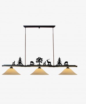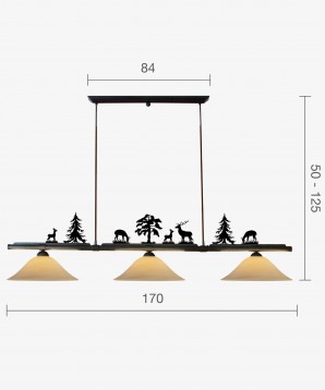 Balkenleuchte Leuchte: Themen - TH91303 | Oberfläche: 820 Eisen braun-schwarz-uni | Schirm: GA42/14, Öffn. E27, D=42 cm H=14 cm, Scavo Rauchglas geschwungen Motiv: Jagd