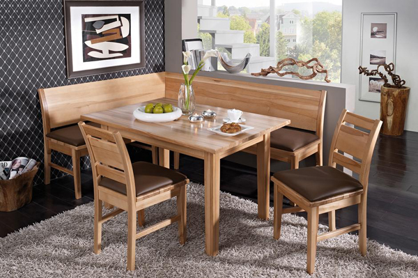 Eckbankgruppe Messina, Kernesche, Bank 130/210 cm, Tisch 85/155cm, 2 Stühle