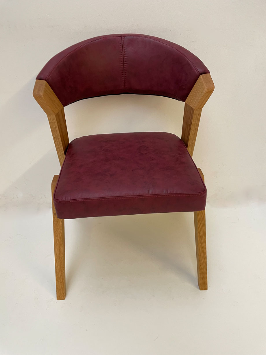 Stuhl Birds 100, Moderner Landhausstuhl mit Wildeichegestell, Hoepke Macy 31 marsala
