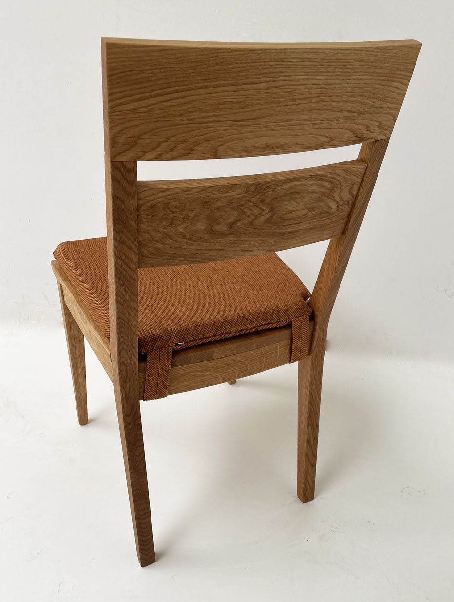 Stuhl Filippa-M, Massivholzstuhl Oviedo, Stuhlpolster genäht, Bänder zum Anbinden, Natura 804 braun
