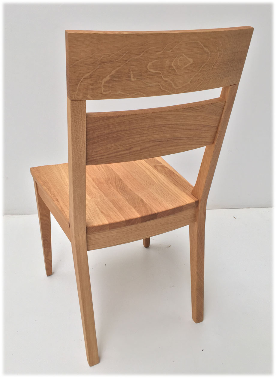 Stuhl Mod. Oviedo, Sitz und Lehne Massivholz , Abm: , Höhe 89 cm, Sitzhöhe 45, Breite 46 cm, Tiefe 52,5 cm,  Holz: Wildeiche, Oberfläche: geölt,