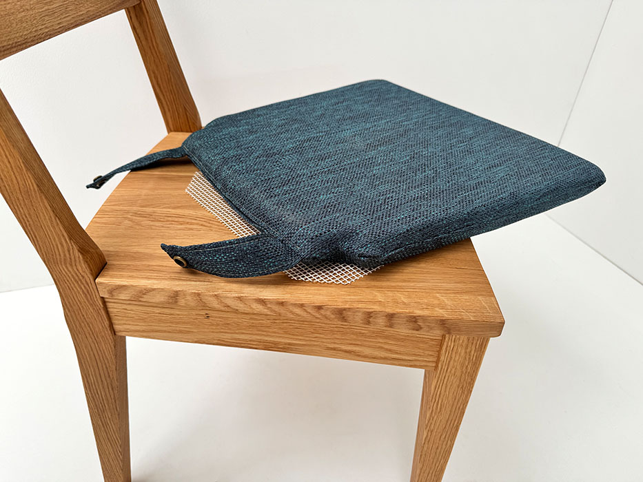 mit Stuhlkissen lose genäht mit Reissverschluß zum Abziehen, Laschen zum Fixieren mit Wendedruckknöpfen, Gegen Verrutschen mit Antirutschunterlage !