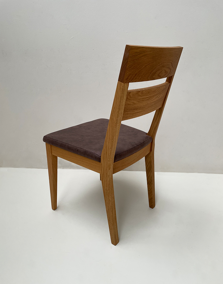 Stuhl Mod. Oviedo, Massivholz , Abm: , Höhe 89 cm, Sitzhöhe 45, Breite 46 cm, Tiefe 52,5 cm, Holz: Wildeiche, Oberfläche: geölt,