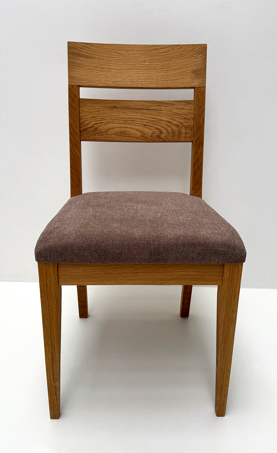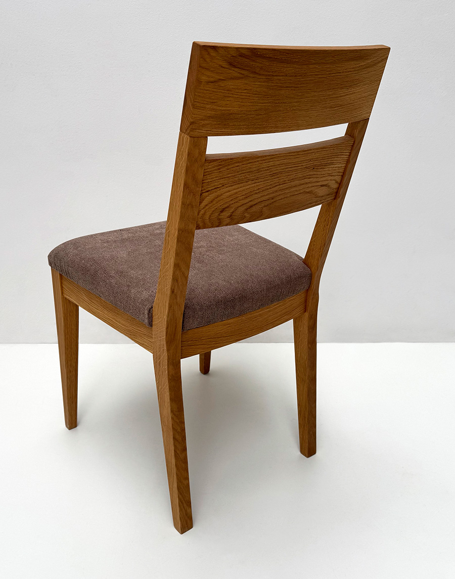 Stuhl Mod. Filippa, Sitz Vollpolster und Lehne Massivholz , Abm: , Höhe 89 cm, Sitzhöhe 45, Breite 46 cm, Tiefe 54 cm, Holz: Wildeiche, Oberfläche: geölt, Festpolster