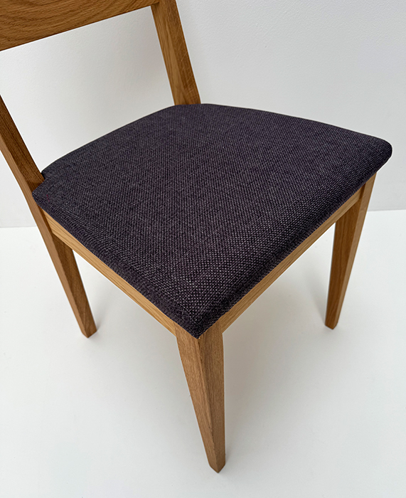 Stuhl Mod. Filippa, Sitz Vollpolster und Lehne Massivholz , Abm: , Höhe 89 cm, Sitzhöhe 45, Breite 46 cm, Tiefe 54 cm, Holz: Wildeiche, Oberfläche: geölt, Festpolster