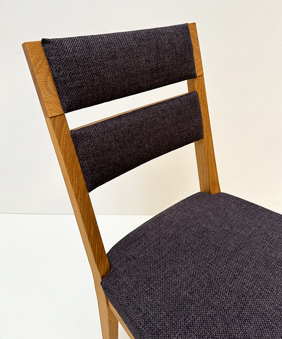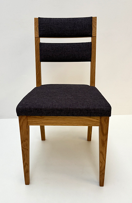 Stuhl Mod. Filippa, Sitz Vollpolster und Lehne Massivholz , Abm: , Höhe 89 cm, Sitzhöhe 45, Breite 46 cm, Tiefe 54 cm, Holz: Wildeiche, Oberfläche: geölt, Festpolster