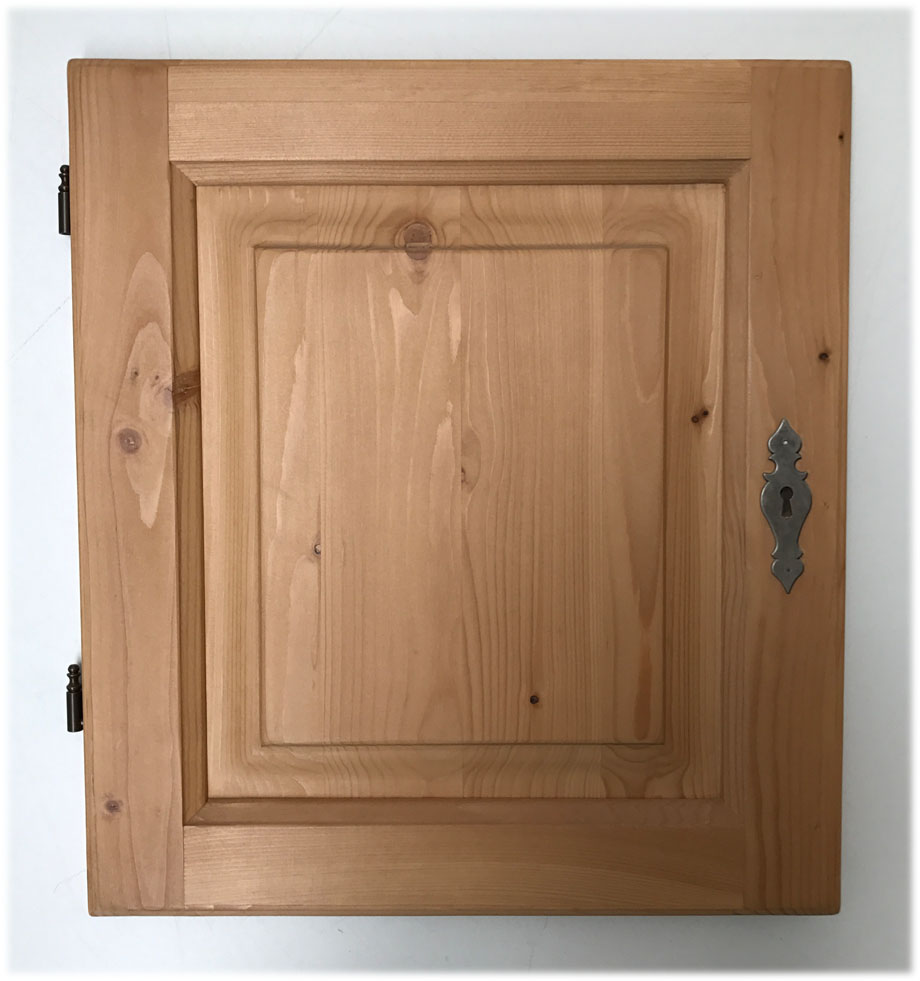 Möbeltüre mit Schloß und Kasette abgeplattet, Fitchenbänder, Fichte massiv, Oberfläche Rosner gewachst