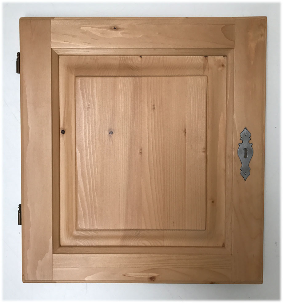 Möbeltüre mit Schloß und Kasette abgeplattet, Fitchenbänder, Fichte massiv, Oberfläche Rosner gewachst
