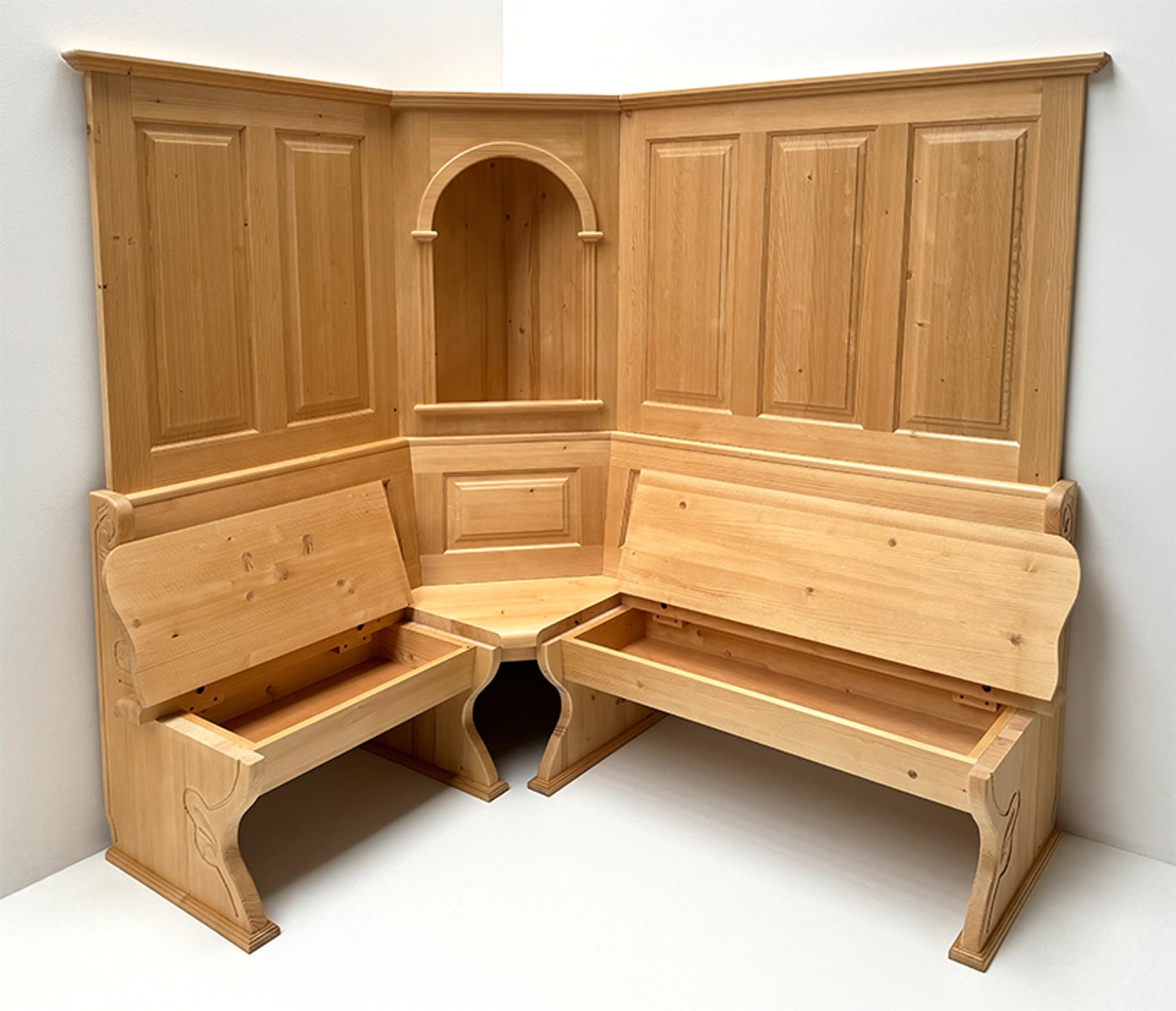 Eckbank Lindau 260/185, Ablagenverbreiterung, Wangenverbreiterung, Heizungsgitter, Ecke aufklappbar