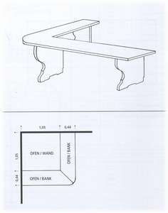 Ofenbänke, Ofenbank im Sondermaß nach lfm, Aufmaßblatt Ofenbank
