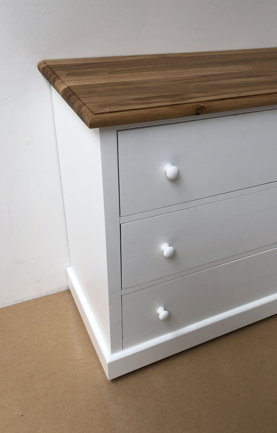 - Oberfläche deckend weiß P004 lackiert, Deckplatte Eiche P061 lackiert