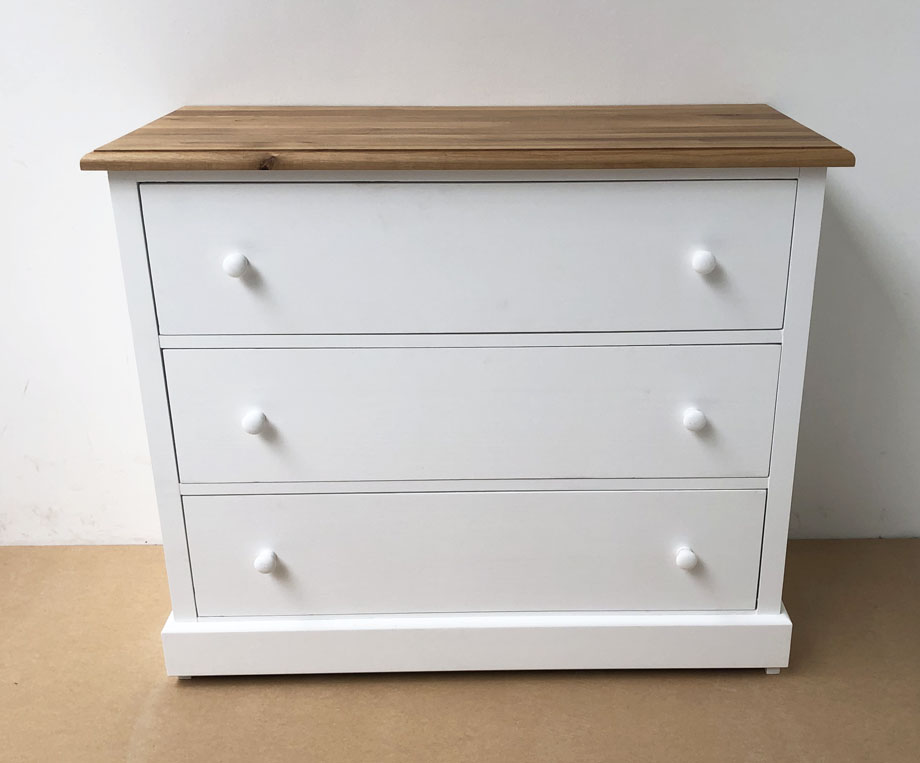 Anrichte Kommode Sideboard, 3 Schubladen, Kiefer, Deckplatte Eiche Weiß 004, Eiche P061