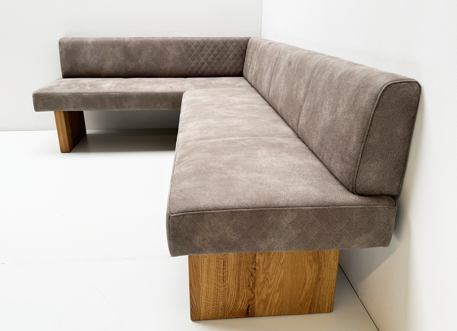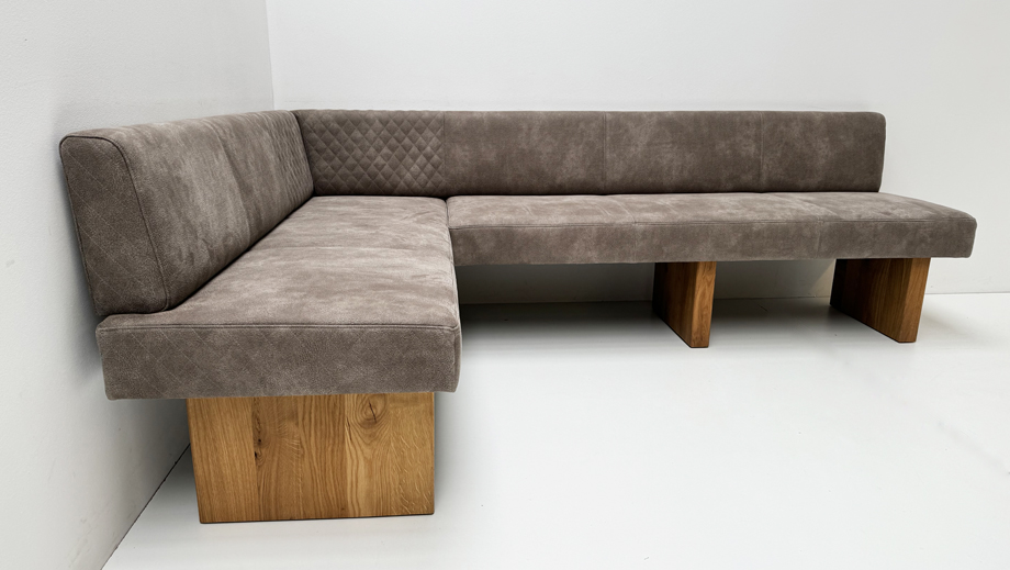 U-Bank GRACE Massivholzeckbank, Polstersitz, 146/236/300 cm, Wildeiche lackiert, Bezug Stratos 9120