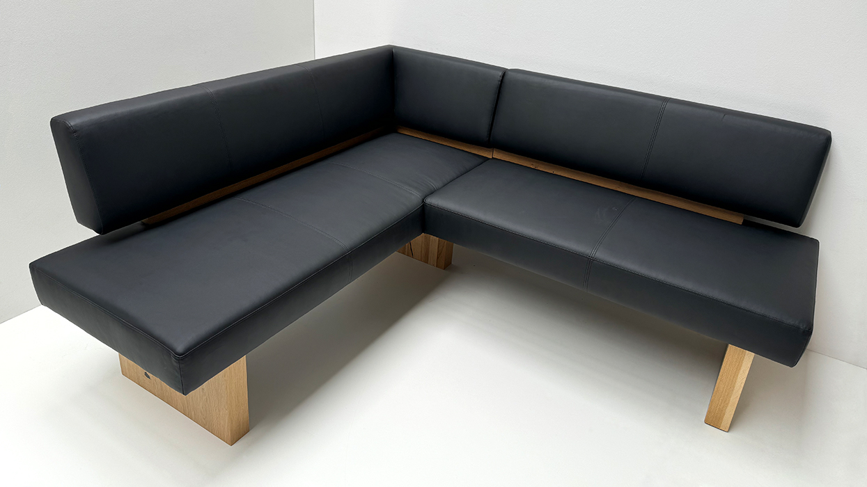 Eckbank SUMMER Massivholzeckbank, Polstersitz, 165/185 cm, Wildeiche, Kunstleder Schwarz 7006