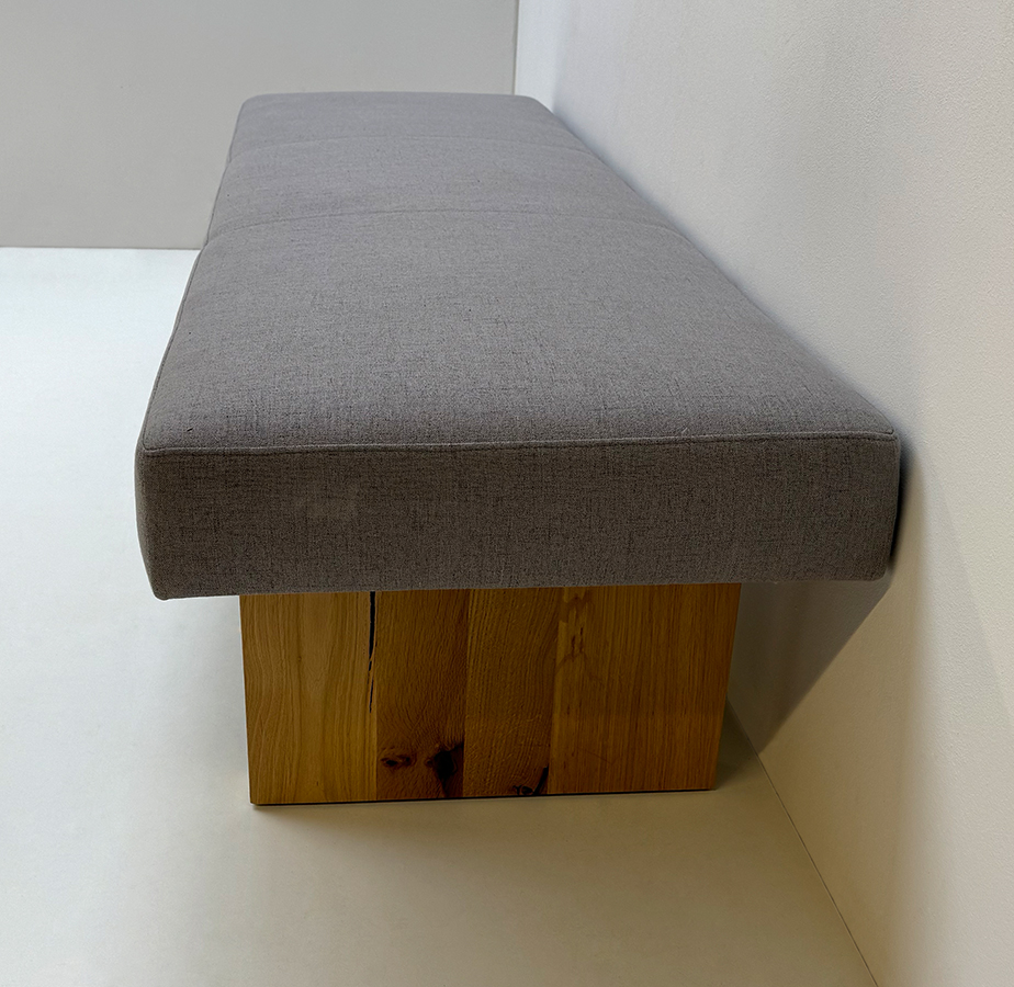 Vorbank SUMMER Vollpolster Massivholzbank, Vorbank 200 cm, Wildeiche lackiert, Bezug Grau 9502 Stoff