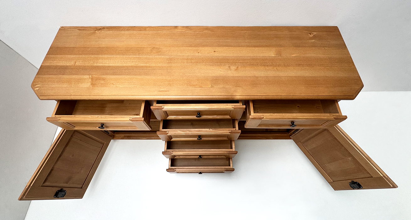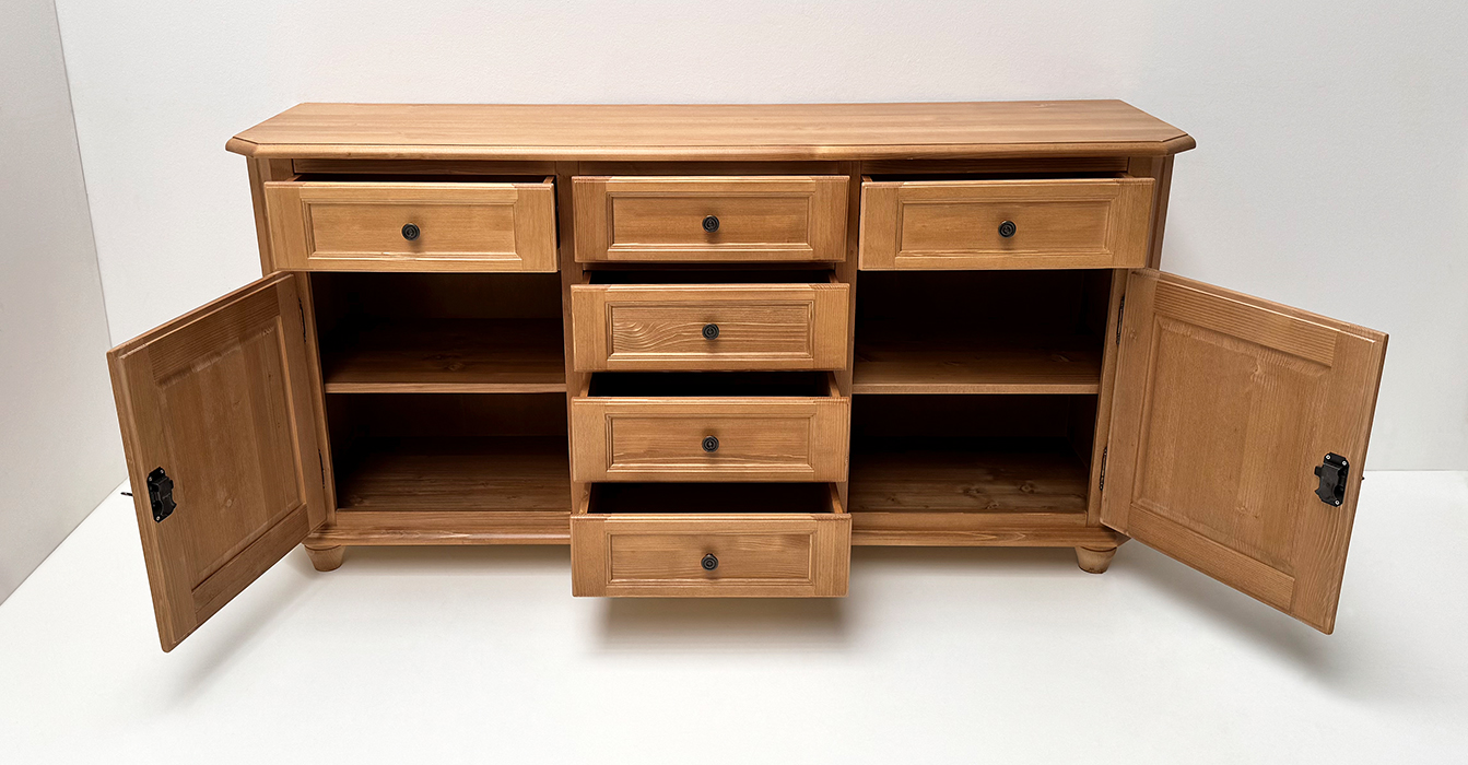 Anrichte Mod. Amberg 2-trg. / 6 Schubladen, Kassetten der Schubladen nicht abgeplattet, 170/84/49 cm, (B/H/T), Fichte massiv,