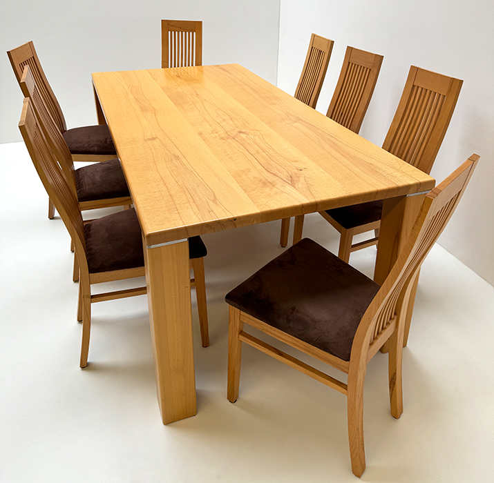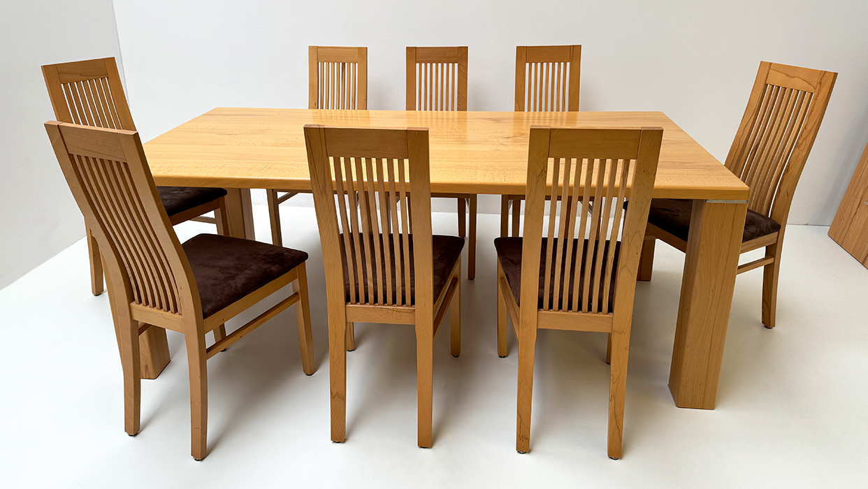 Sitzgruppe Nürnberg Buche, Tisch 100/200 cm, 2 Ansteckplatten 50 cm, 8 Stühle Schösswender Mod. 32