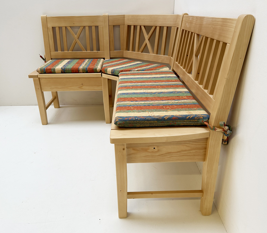 Eckbank Nürnberg Fichte Sondermaß 125/160 cm, Polster genäht, Pocking bunt