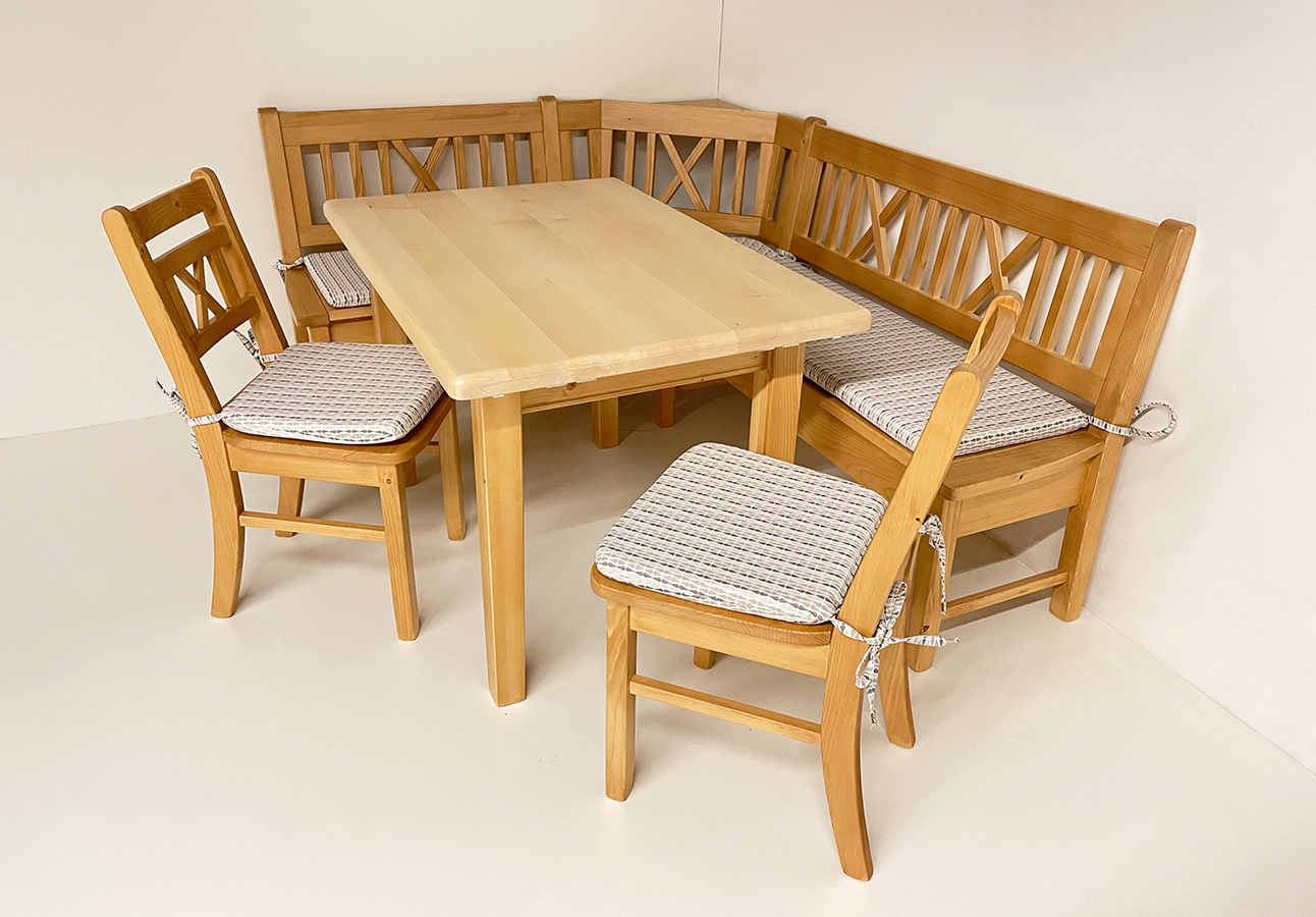 1 Eckbankgruppe Nürnberg, Fichte massiv, Rosner gebeizt und lackiert bestehend aus: