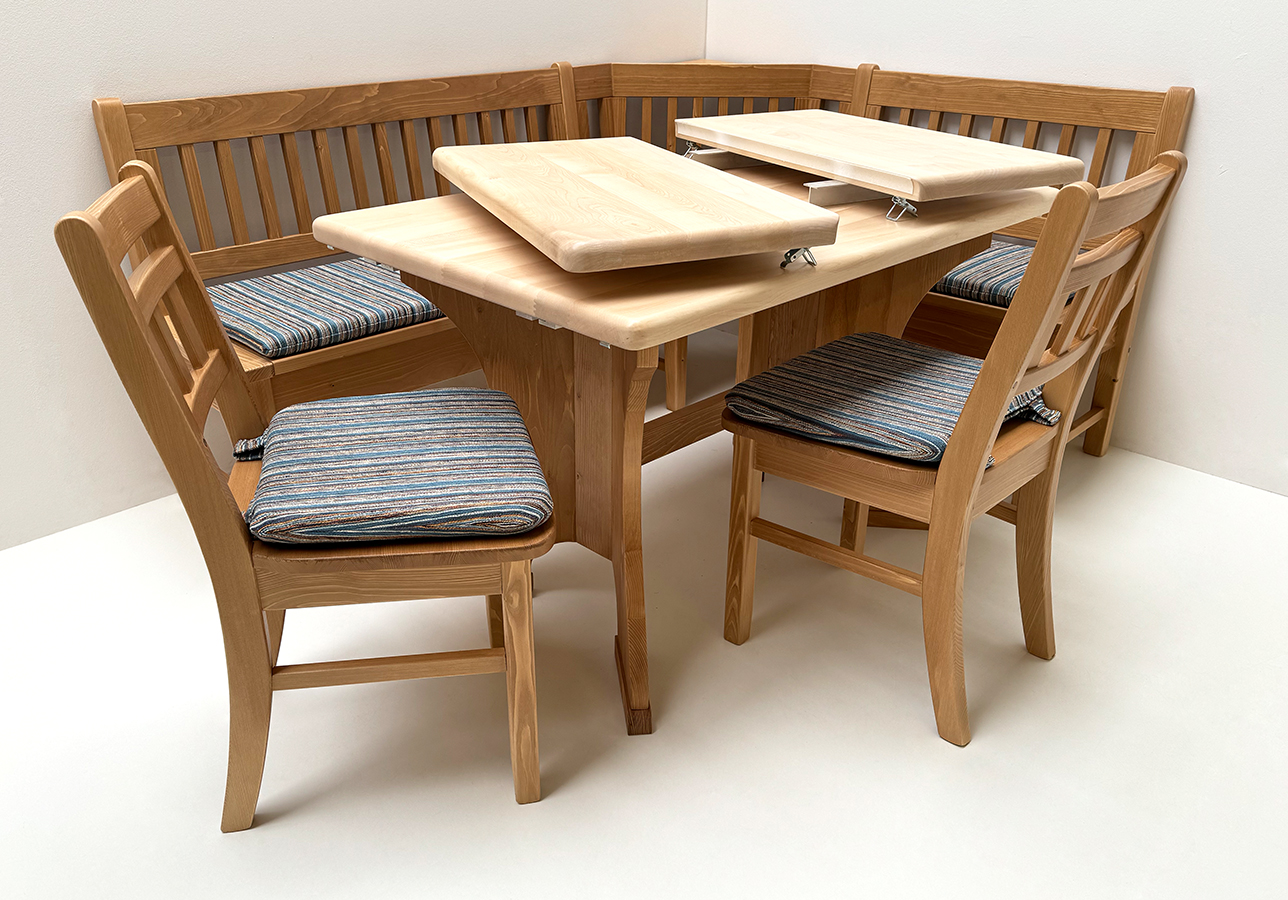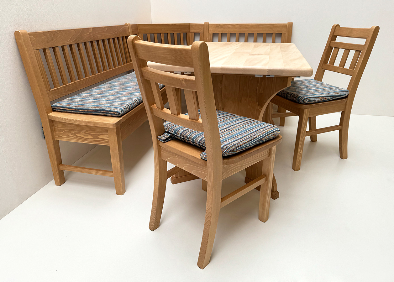 Eckbankgruppe Nürnberg, 190/150 cm, Ahornpatte 120/80 cm, 2 Ansteckplatten, 2 Stühle, TS-3033