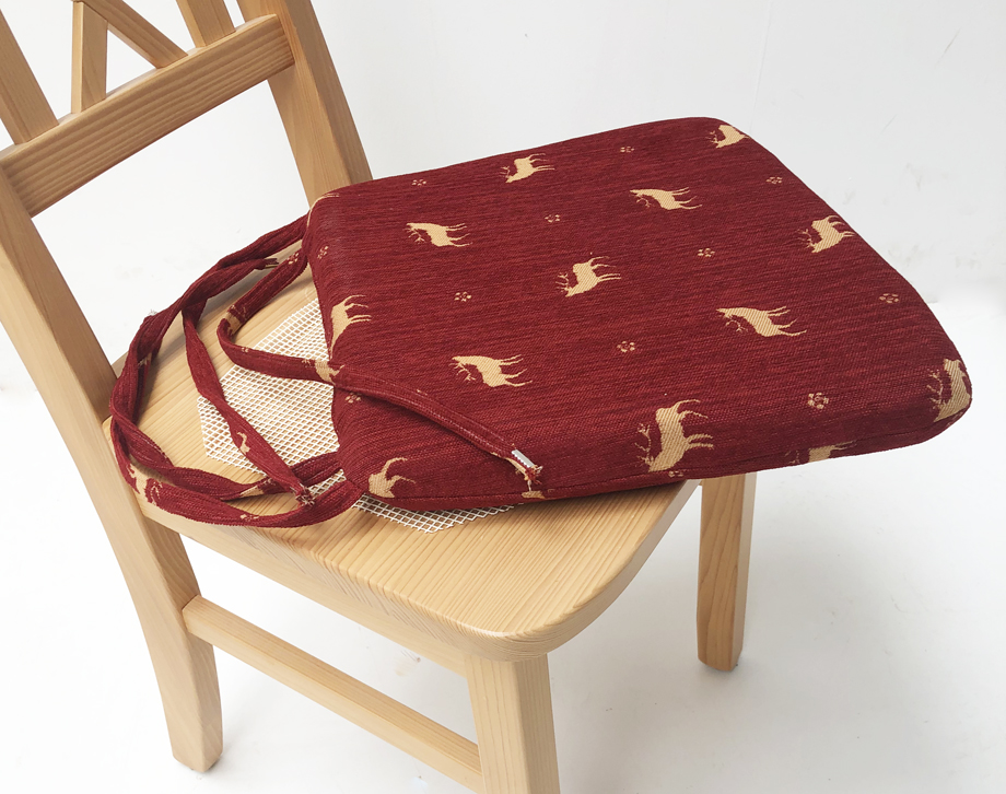 mit genähtem Polster, Reißverschluss zum Abziehen, Bänder aus dem Möbelstoff zum Anbinden
