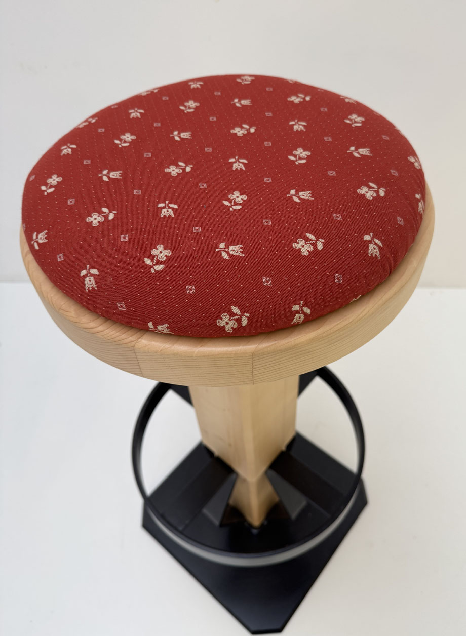 Barhocker, Bauernstuhl WL- 8807, Säule Eckig, Rundsitz, Polsterplatte Landleben TS-3011