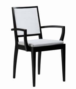 Holzart: Buche Gesamthöhe: 90 cm Sitzhöhe: 48 cm Breite: 59 cm Tiefe: 55 cm Sitz und Rücken: Schaumstoff Festpolster Sitz innenliegend
