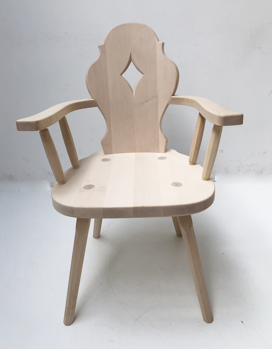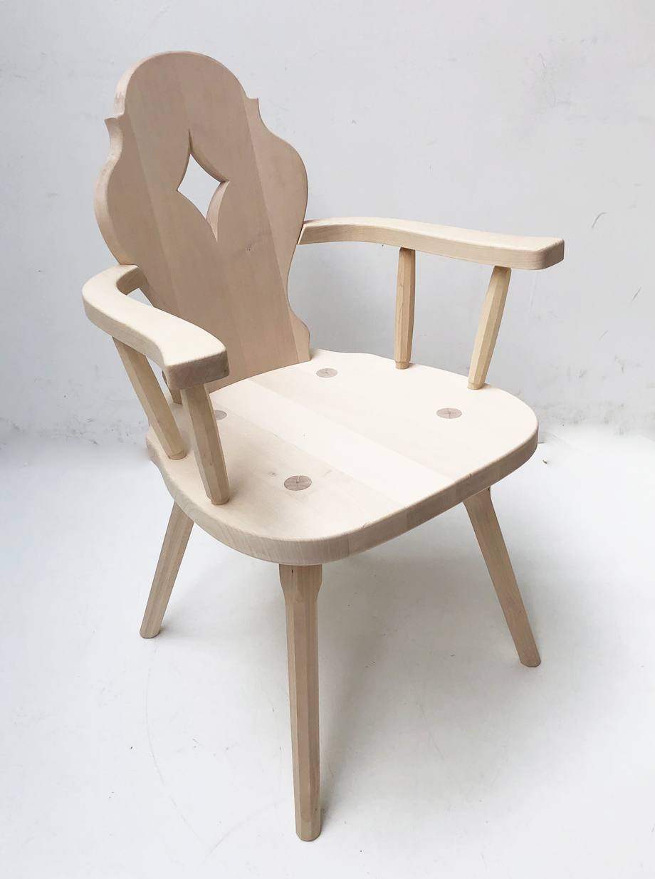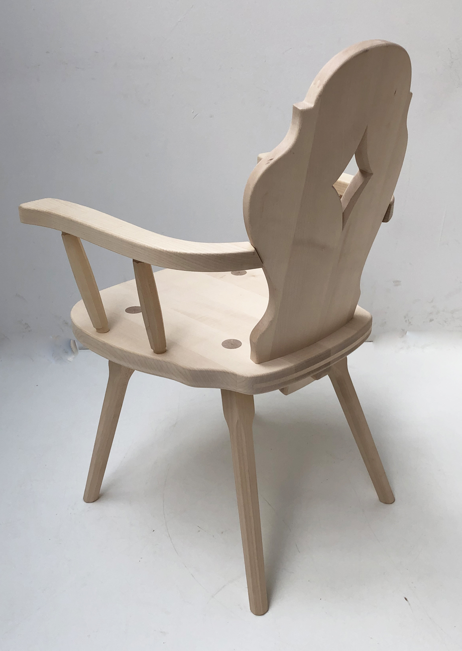 Bauernsessel Bauernstuhl Armlehnstuhl, in massivem Ahorn, roh, Kissen genäht, TS-1677