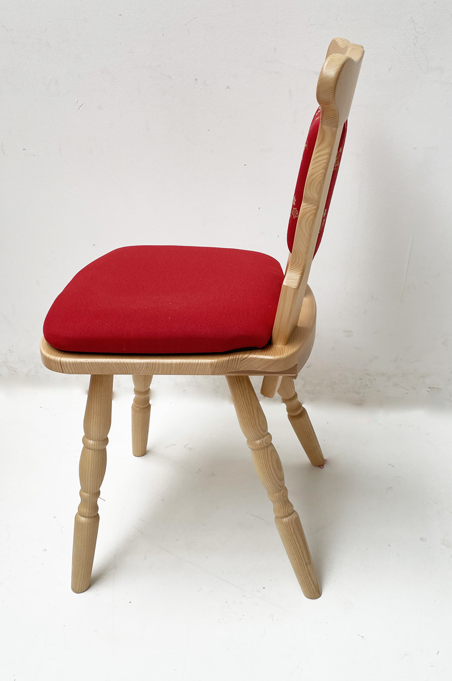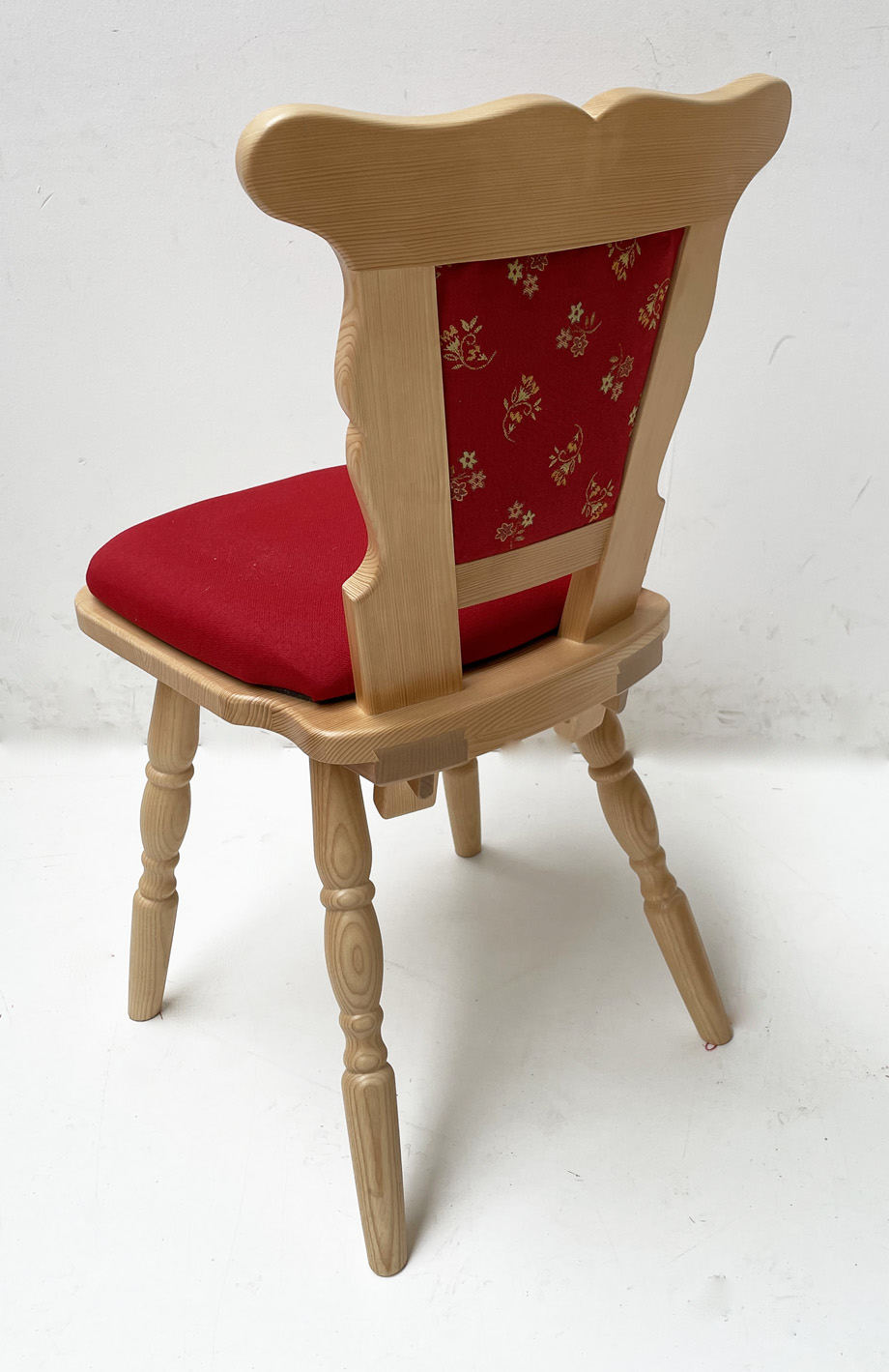 Bauernstuhl Modell 77 mit Rückenpolsterung, in Fichte, Rosner gebeizt und lackiert