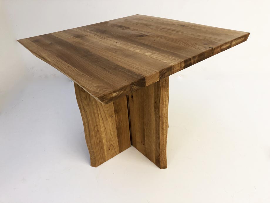 Baumtisch Tisch Kreuzfußtisch Oviedo 2, 90/90 cm, ohne Mittelfuge, Wildeiche geölt