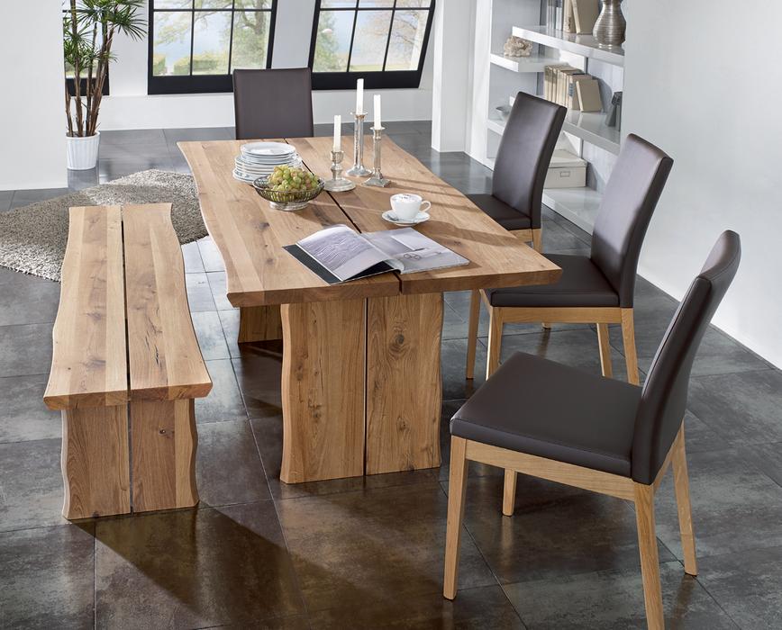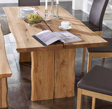 Platte und Gestell massiv mit Baumkante, Holz: Wildeiche, Oberfläche: geölt (WiLs 1-13)