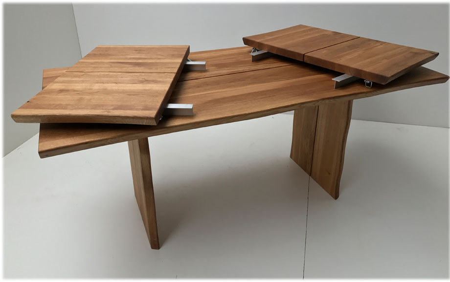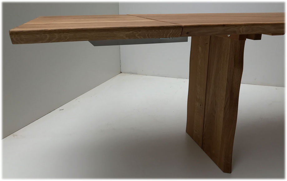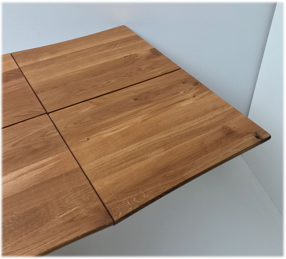 Baumtisch Tisch Oviedo 180/90 cm mit 2 Ansteckplatten 50 cm, Wildeiche geölt