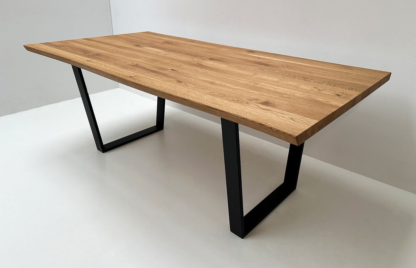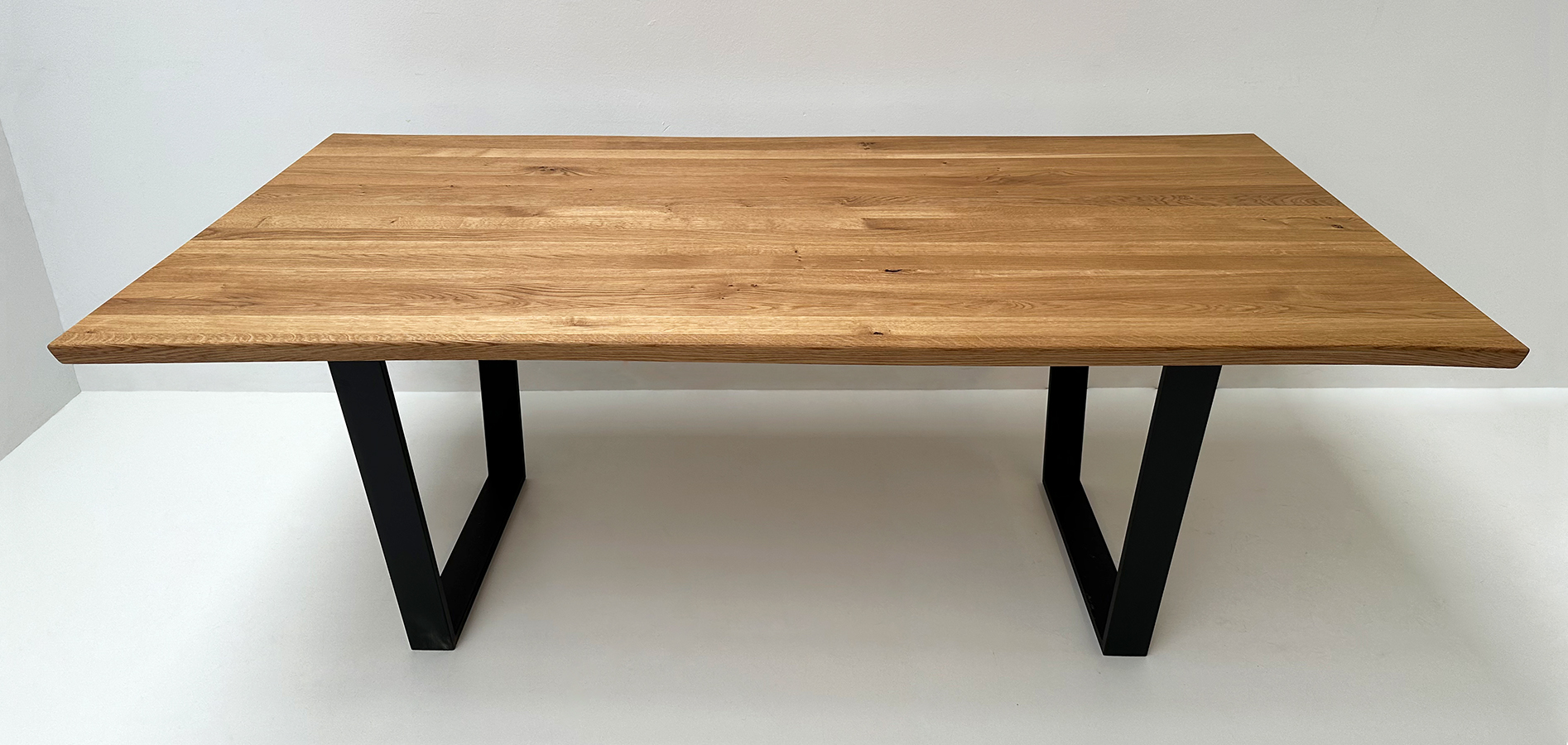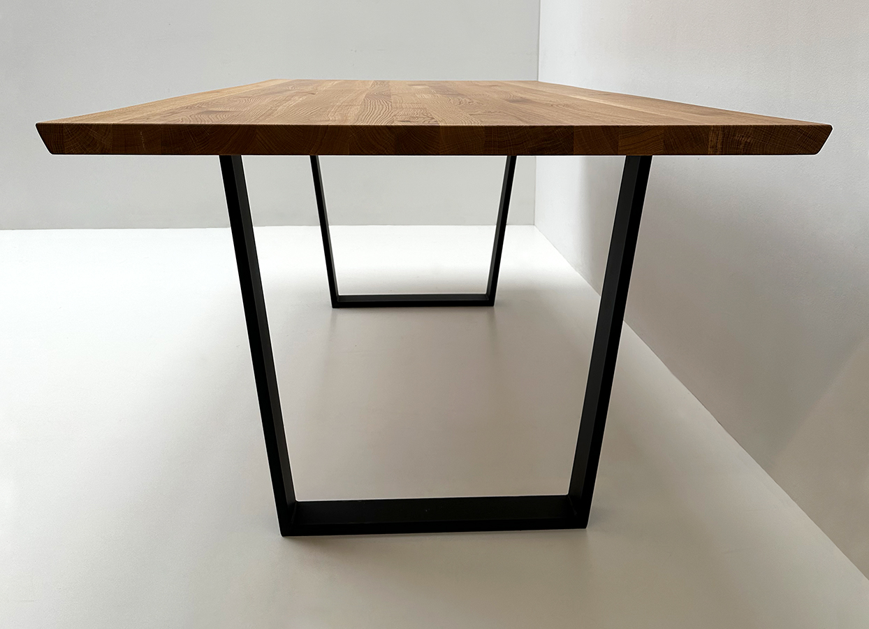 Baumtisch Tisch Oviedo, 200/100 cm, ohne Mittelfuge, Wildeiche geölt, Metallgestell, VForm !