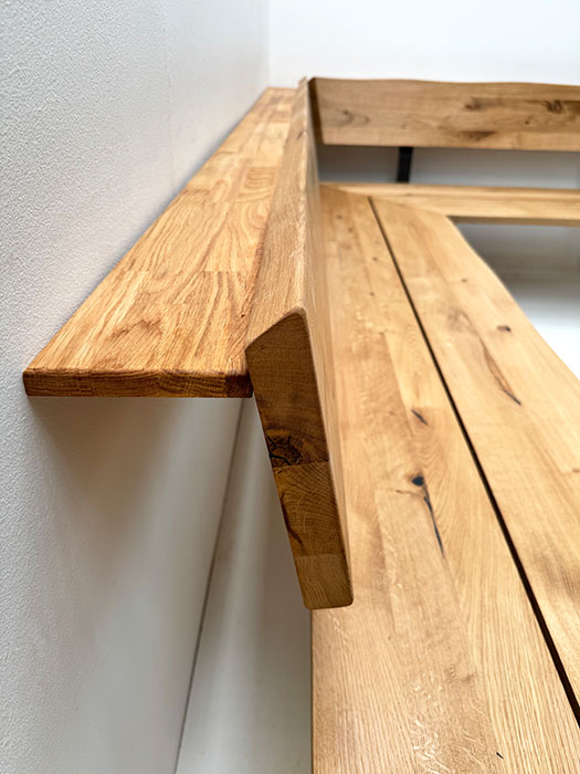Eckbank Baumbank Oviedo, Sondermaß 250/170 cm, beidseitige Ablagenverbreiterung, Wildeiche massiv